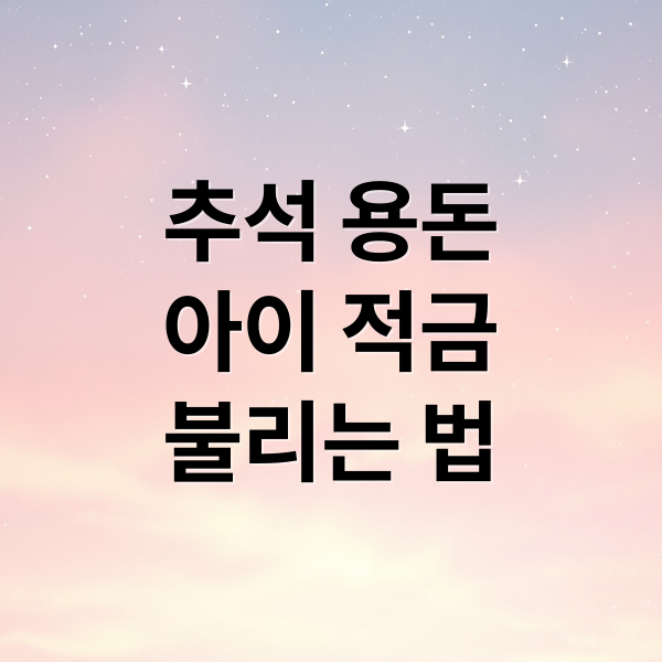 추석에 받은 아이 용돈, 그냥 두지 마세요! 고금리 적금을 활용하면 아이의 미래를 위한 든든한 밑거름이 될 수 있습니다. 은행별 상품 비교와 재테크 전략을 통해 추석 용돈을 야무지게 불려보세요. 지금부터 고금리 적금 활용법을 알아볼까요?