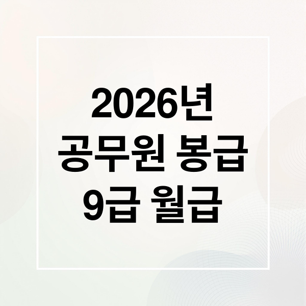 2026년 공무원 봉급, 특히 9급 공무원 월급에 대한 궁금증을 풀어드립니다. 월급, 수당, 실수령액까지 2026년 공무원 봉급의 모든 것을 파헤쳐 완벽하게 분석해 드립니다. 9급 공무원을 준비하시는 분들에게 유용한 정보가 될 것입니다.
